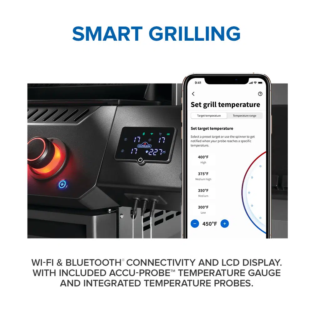 הגריל כולל חיבורי Wi-Fi ו-Bluetooth שמקרבים אותך לחוויית הצלייה שלך יותר מתמיד.