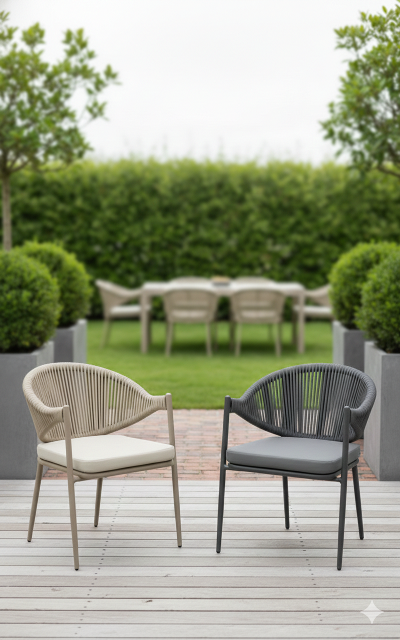 הכיסא בנוי ממסגרת אלומיניום חזקה וקלת משקל, עמידה בפני חלודה ובנויה לשימוש ממושך בגינות, מרפסות ובפינות אירוח.