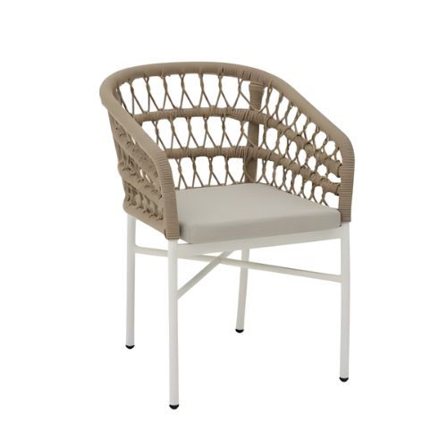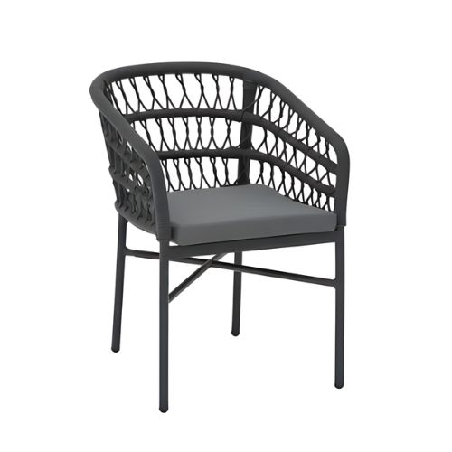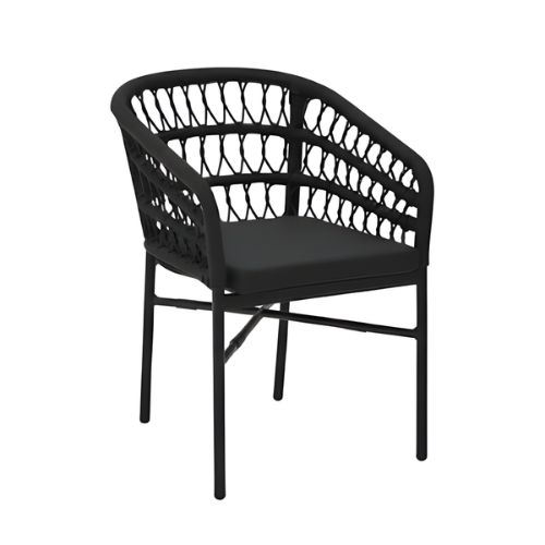 גב הכיסא מעוצב בקליעת חבלים איכותית היוצרת מראה אלגנטי וייחודי, ומספק תמיכה נעימה ונוחה בזמן הישיבה.