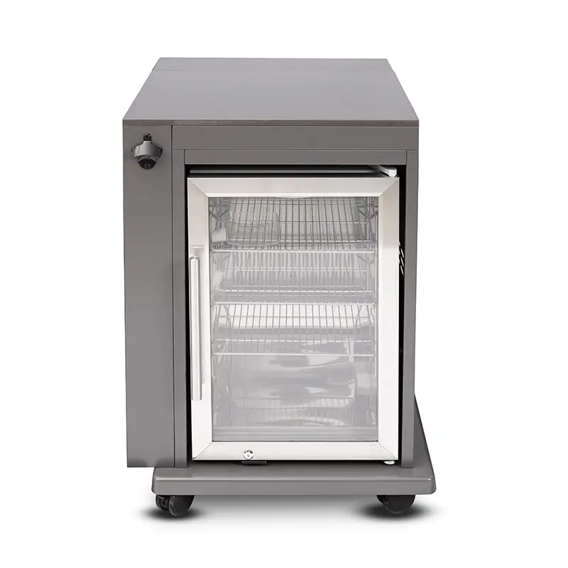 מידות : אורך: 77.4 ס"מ (כולל בסיס היחידה) | עומק: 69.2 ס"מ(כולל בסיס היחידה והפאנל סגירה העליון) |  גובה: 90 ס"מ. יחידת מקרר מובנה | RFCU-SS יחידת קירור איכותית למטבח החוץ שלך – הכוללת מקרר שקוף עם דלת זכוכית, תאורה פנימית ומדפים מתכווננים, נועדה לשמירה על משקאות ואוכל קריר ונגיש בזמן האירוח. תכונות עיקריות: • מקרר בנוי לשימוש חוץ עם דלת זכוכית מחוסמת • מדחס שקט עם שליטה על הטמפרטורה • תאורה פנימית LED להארת התכולה בלילה • נפח אחסון 60 • מדפים מתכווננים לאחסון גמיש • פותחן בירות בחזית היחידה לפתיחת בקבוקים בצורה נגישה • גלגלים לניוד נוח • משטח פורצלן איכותי עם עמידות גבוהה לחום/קור, שריטות ותנאי חוץ. • פאנל סגירה אחורי המאפשר הצמדה מושלמת לקיר ומניעת נפילת דברים לחלקו האחורי של המטבח • מבנה מודולרי – מתחבר בקלות ליחידות אחרות מידות : אורך: 65.3 ס"מ (כולל בסיס היחידה) | עומק: 69.2 ס"מ(כולל בסיס היחידה והפאנל סגירה העליון) | גובה: 90 ס"מ כל היחידות תוכננו במיוחד להתאים לגרילי Napoleon ROGUE – ניתן לשלב, להרחיב ולבנות מטבח חוץ בהתאמה אישית לפי הצורך והמרחב. אחריות על היחידות: 10 שנות אחריות למבנה יחידת המטבח | 5 שנות אחריות למשטחי הפורצלן | פאנל סגירה – שנה | ברז וסיפון – שנה | שאר חלקים – שנתיים | מקרר- שנה. *בהתאם לתנאי האחריות*