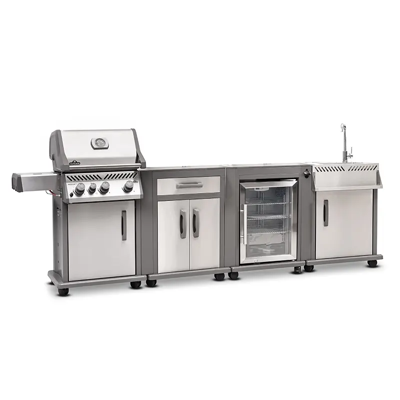 מטבח חוץ מודולרי NAPOLEON ROGUE (נירוסטה) | גריל גז 3 מבערים + יחידת מקרר + יחידות כיור + יחידת אחסון