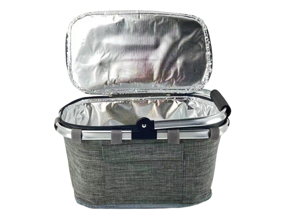 סלסלת צידנית מתקפלת בנפח 30 ליטר, מידות הצידנית: 44x28x25 ס”מ, ציפוי פנימי מיוחד המתאים לאחסון מזון, קלה לניקוי, ידית נשיאה מרופדת, כיס קדמי לאחסון חפצים אישיים, מתקפלת לגודל קומפקטי ונוח לאחסון.
