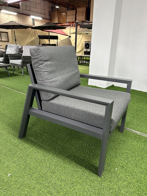 פינת ישיבה דגם "ליצ'י" תלת מושבית עשויה אלומיניום הסט כולל 4 חלקים - ספה תלת מושבית, 2 כורסאות יחיד ושולחן קפה מאלומיניום מלא מידות -