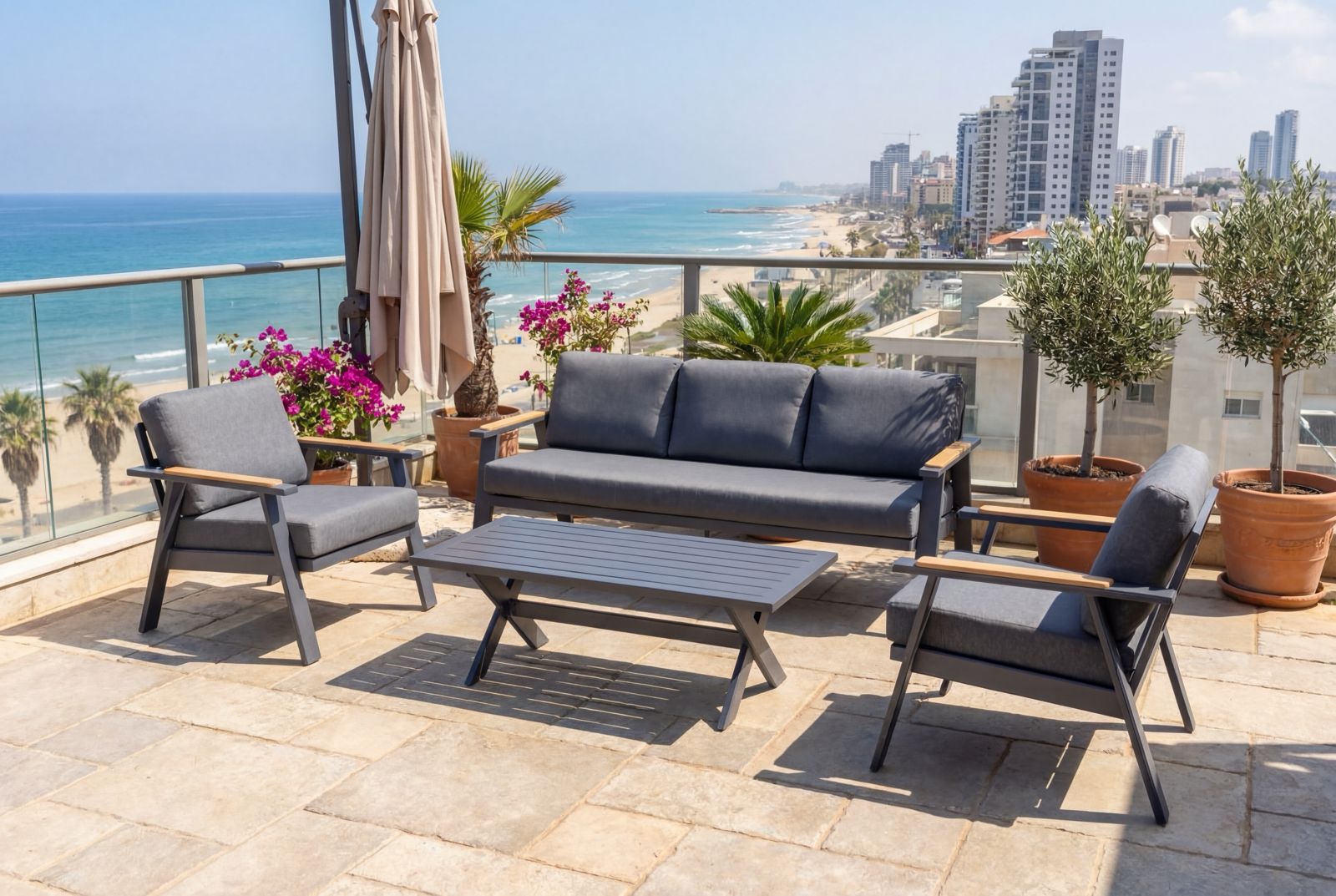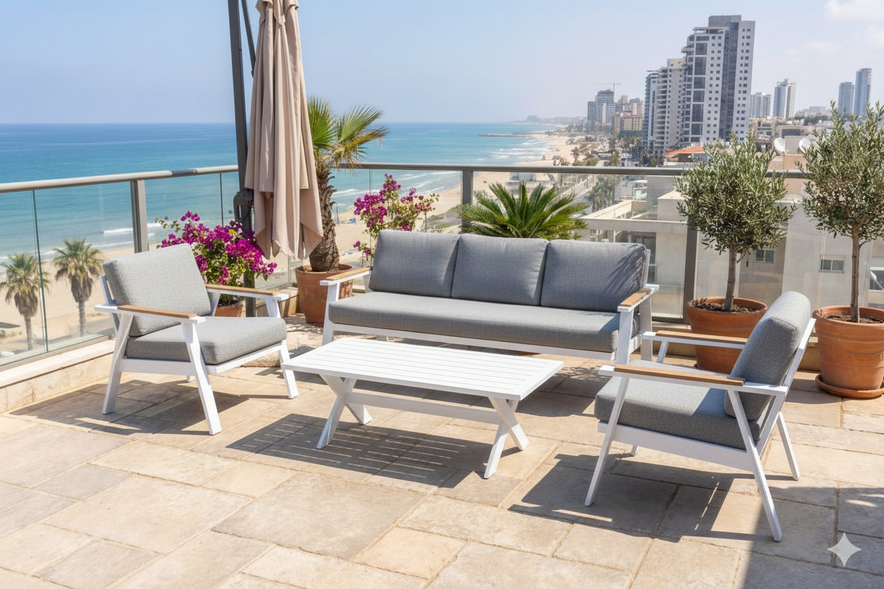 פינת ישיבה תלת מושבית מאלומיניום דגם "מרבלה"