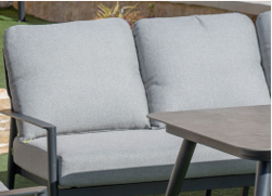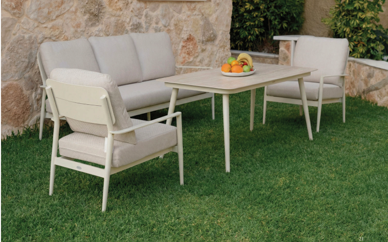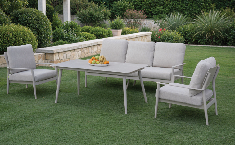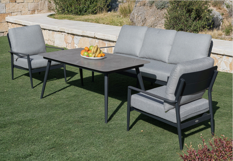 שלדת אלומיניום עמידה במיוחד בשילוב שולחן עם משטח אבן סינטטית (Sintered Stone) לביצועים מעולים, חוזק מרבי ומראה יוקרתי הנשמר לאורך שנים. פתרון מושלם לגינה, למרפסת או לפטיו.