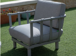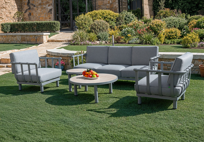 כריות המערכת עשויות מבדים פרימיום דוחי מים ובעלי הגנת UV, השומרים על גמישות וצבע הגוון האפור הקלאסי לאורך זמן, גם בחשיפה ישירה לשמש.