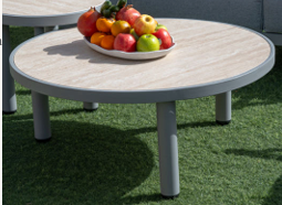 המערכת בנויה על בסיס שלדת אלומיניום מסיבית ועמידה לחלודה (Rust-resistant), המעוצבת בקווים מעוגלים המעניקים לה נוכחות מרשימה ויציבות יוצאת דופן. גולת הכותרת של הדגם היא צמד השולחנות הכוללים משטח Sintered Stone (אבן קיסר/גרניט פורצלן) – חומר יוקרתי, עמיד במיוחד לשריטות וכתמים, המעניק מראה טבעי ואלגנטי.