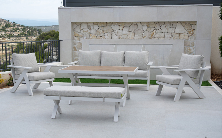 שדרגו את הגינה או המרפסת עם מערכת ישיבה המשלבת אלגנטיות נצחית ועמידות בלתי מתפשרת. המערכת עוצבה מאלומיניום איכותי (Premium Crafted) למראה יוקרתי שנשמר לאורך שנים.