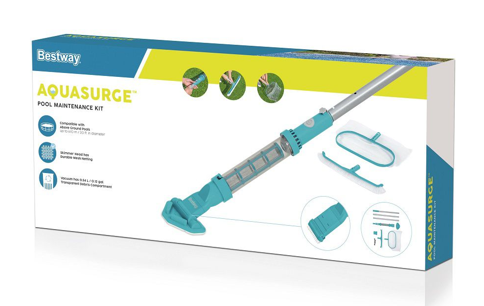 ערכת ניקיון גדולה ואיכותית לתחזוקה וניקיון הבריכה באמצעות שואב קרקעית נטען, איכותי לניקוי קרקעית הבריכה במהירות ויעילות, קל להרכבה, תפעול ונשיאה.