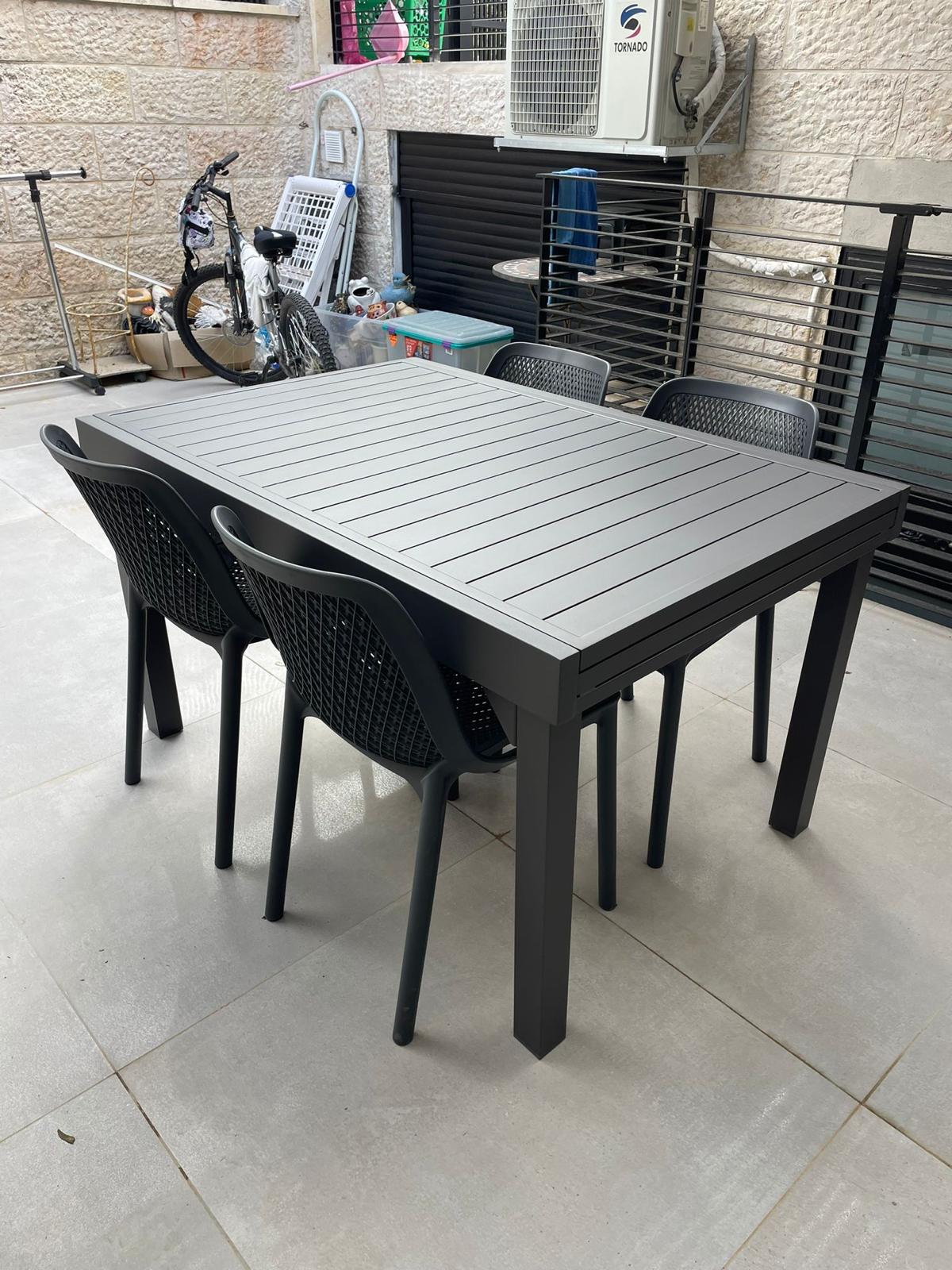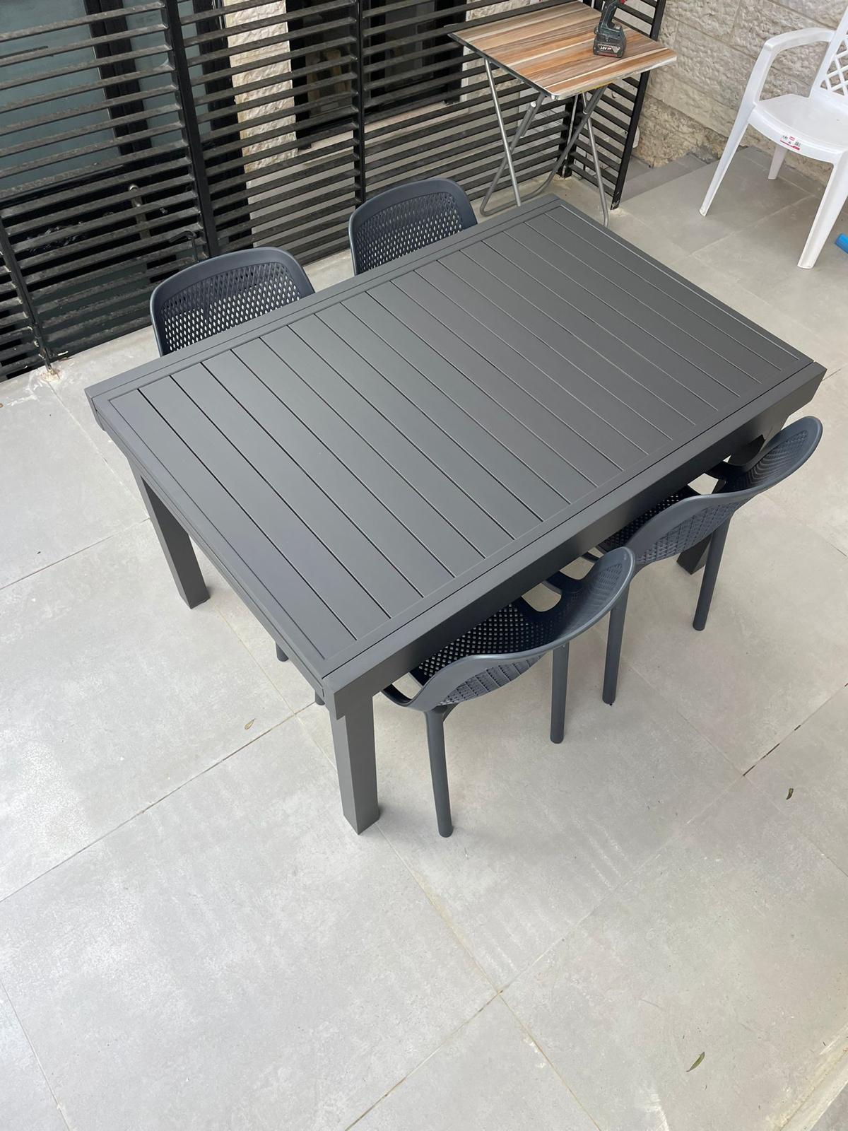 שולחן 100% אלומיניום 135 נפתח ל-270 + 4 כסאות פלסטיק יצוק במגוון צבעים