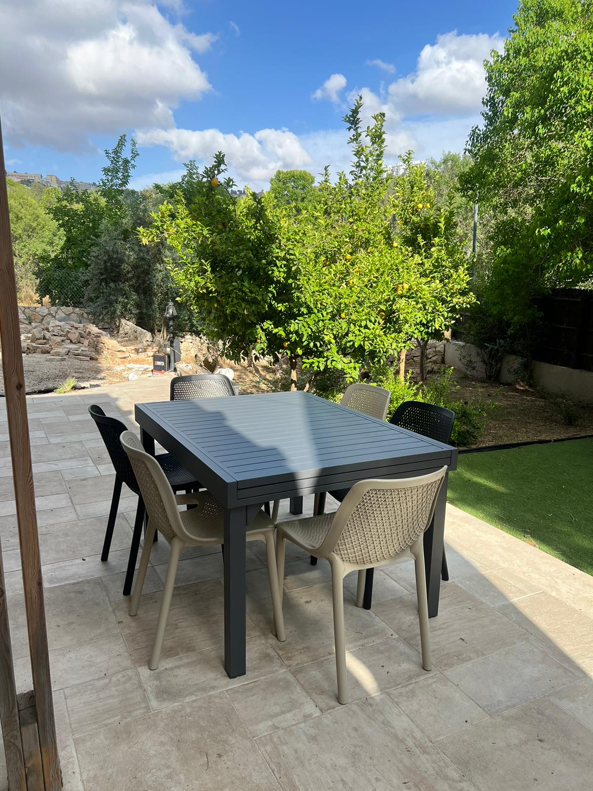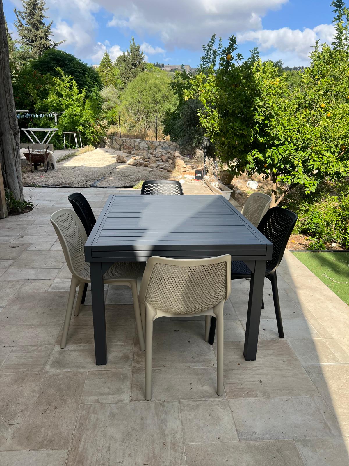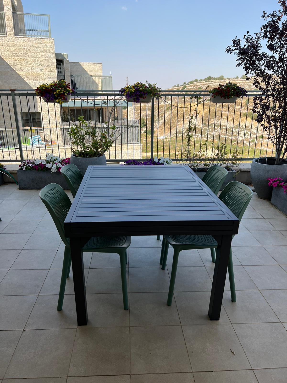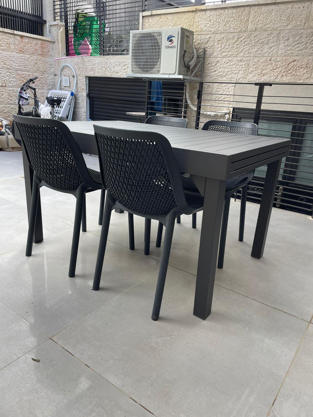שולחן נפתח מאלומיניום, מתאים גם לשימוש חוץ - גינות, מרפסות וכו' - וגם לשימוש פנים. עמידות גבוהה מאוד לתנאי חוץ בזכות החומרים הידידותיים לחוץ הוא עשוי - 100% אלומיניום, כולל פלטה השולחן, וללא זכוכית לפני פתיחתו, ניתן להושיב סביב השולחן 6 אנשים, ולאחר פתיחתו כמות הסועדים תגדל עד ל10 אנשים (היושבים על כסאות עם ידיות, ללא ידיות ניתן להושיב אפילו יותר מכך) מידות : סגור - 100x135 | פתוח - 100x270 | גובה - 75 ס"מ כיסא פלסטיק יצוק עם ידיות. חזק במיוחד לשימוש בפנים ובחוץ מוגן קרינת UV מוגן חום מידות: גובה-82ס״מ, רוחב-51ס״מ, עומק-59ס״מ הכסא נערם עד 4 יח