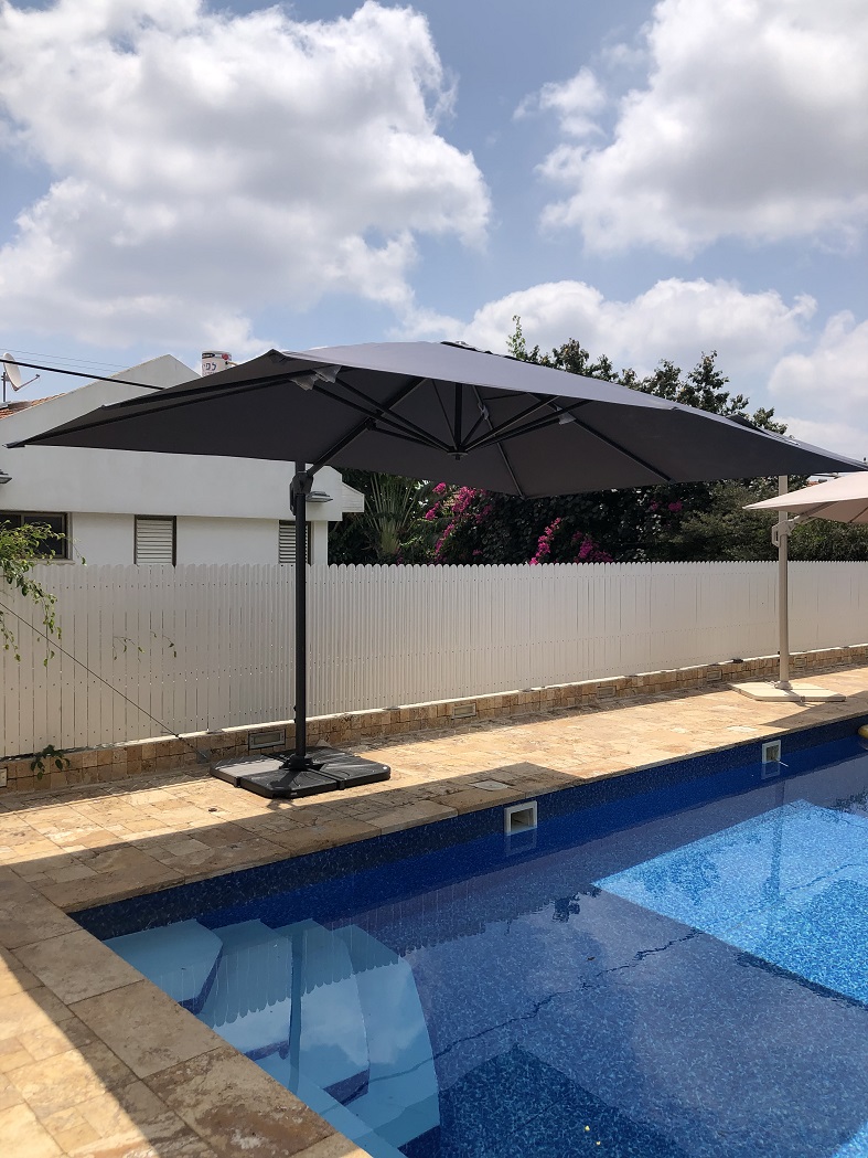 מסתובבת 360 מעלות סביב המוט המרכזי שלה, בעזרת פדל , על מנת להעניק הצללה למספר מרחבים שונים בחלל החוץ שלכם