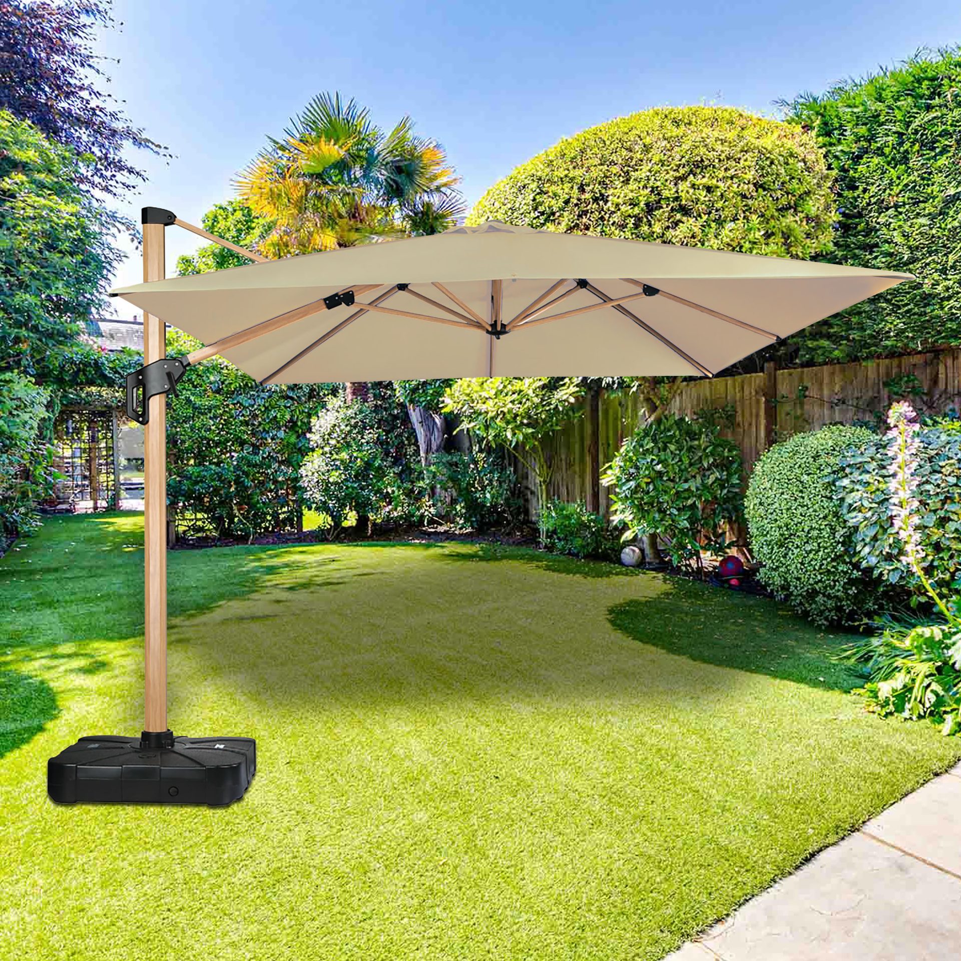 - שמשיית חצר מסיבית, רחבה ועמידה לאורך שנים בעלת גוף אלומיניום בשילוב בד אוליפן עבה, עמיד וחזק במיוחד (Olefin Fabric).
