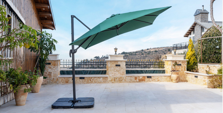חופה איכותית: בד פוליאסטר עמיד עם מסנני קרינת UV המגן על היושבים מתחתיה ושומר על מראה הבד לאורך זמן.