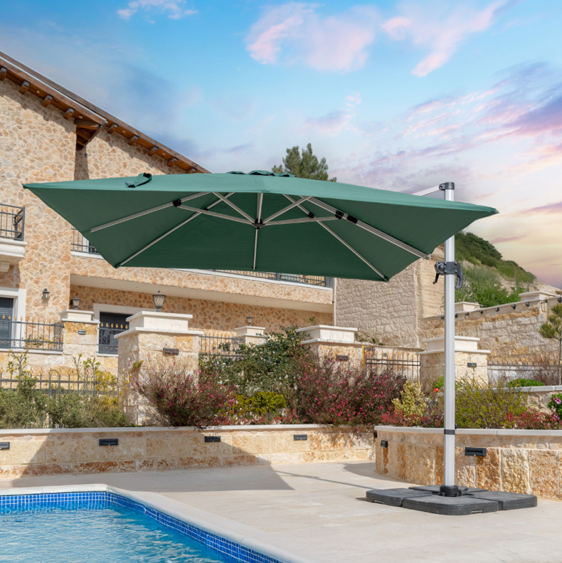 סיבוב: מנגנון צידוד לשינוי זווית ההצללה *הצבע הירוק מגיע ללא פתח אורוור בחלק העליון ! *השמשייה לא מגיעה עם בסיס, ניתן לרכוש בנפרד !