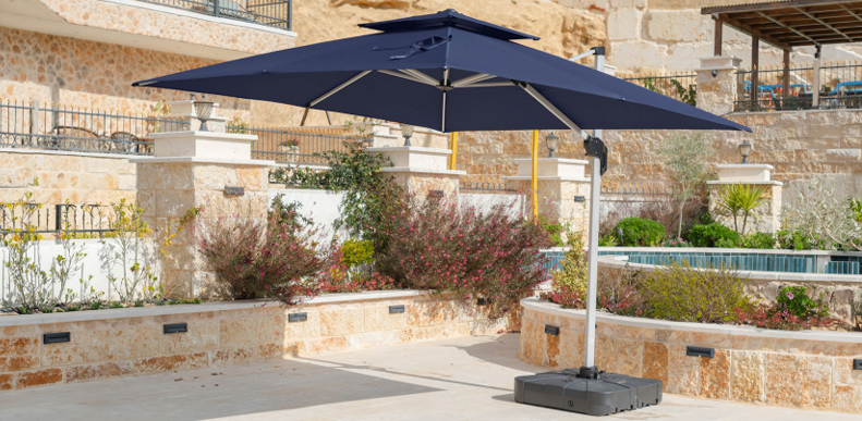 עמידות בתנאי חוץ: שלדת אלומיניום חזקה בציפוי אל-חלד ובד פוליאסטר איכותי, עבה ועמיד לקרינת UV, השומר על מראה חדש ורענן לאורך זמן.